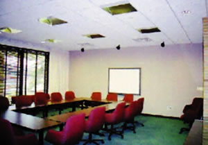 The Videssence Softlite is a recessed 2x2 fixtures, which provides even vertical illumination in three directions, while comfortably lighting the participants in the video. The indirect reflection of the fixture reduces lighting levels at the front of the space for good contrast at the monitor, while keeping direct light off the camera lens.